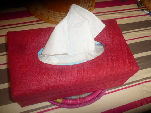 Ou alors on peut même y mettre des mouchoirs en tissu et les plier d'une certaine façon pour que cela ait le même usage et effet que ces boites de mouchoirs en papier.